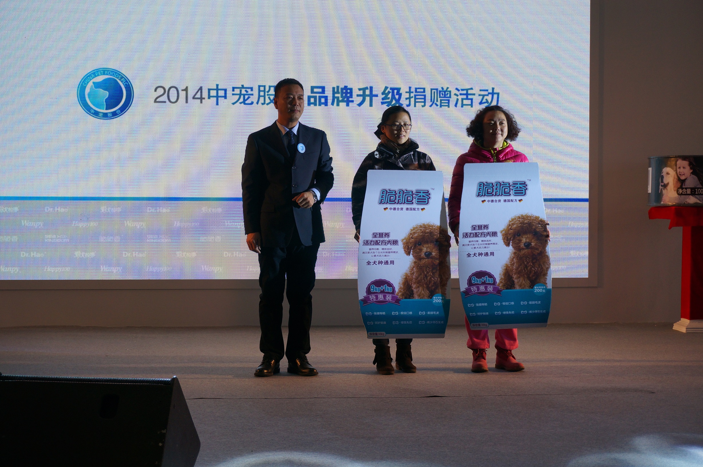 會(huì)議現(xiàn)場(chǎng),中寵股份副總裁梁洪文先生代表公司向北京好貓好狗伴侶動(dòng)物基地和幸運(yùn)土貓兩個(gè)寵物救助組織進(jìn)行愛心寵物糧食捐贈(zèng)。